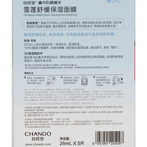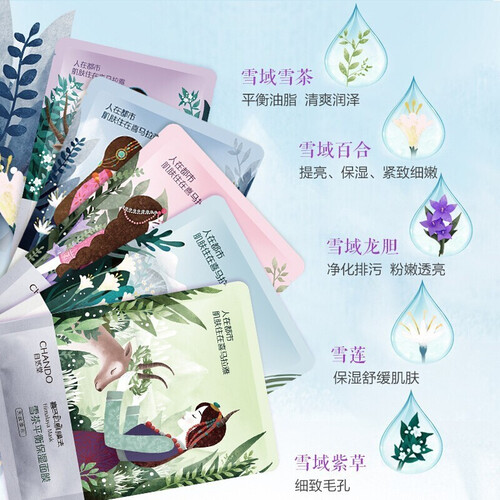 内含有大容量的精华液,一片面膜精华液含量相当多,补水效果神奇。搭配有五大雪域植萃,有效改善肌肤问题。