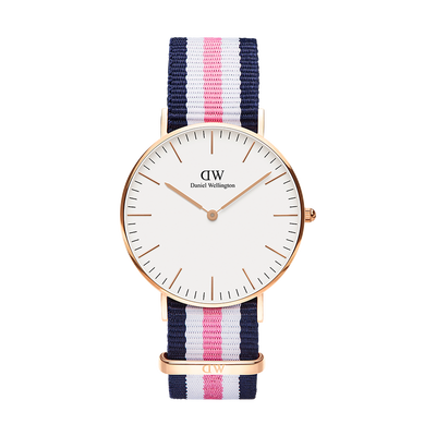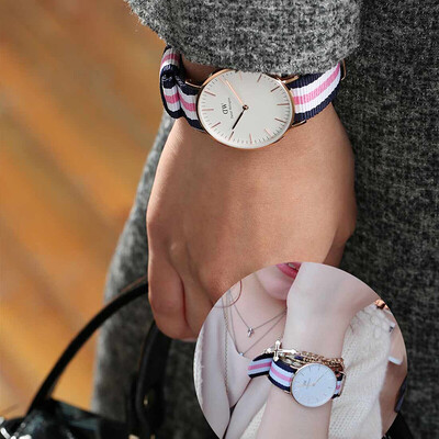 纤薄大圆盘,撞色指针和刻度,清晰明朗,为您带来直观快捷的读时体验,粉白蓝多彩条纹织带,彰显清新活泼的魅力风格。