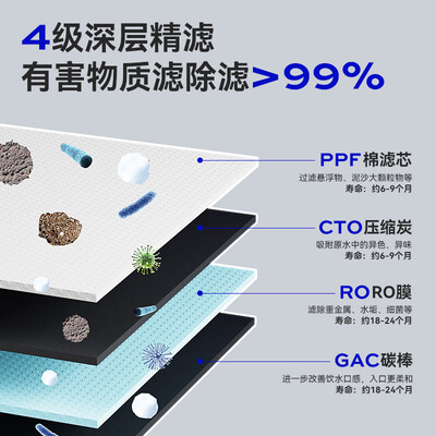 双出水设计,能够减轻反渗透膜的负担,延长其使用寿命。多种安装方式可随心选择,满足不同厨房的装修风格。