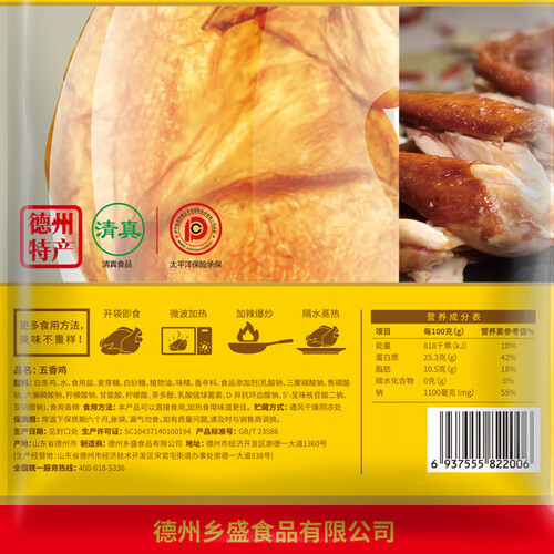 在传承德州扒鸡传统工艺的基础上,融入现代食品加工技术,皮薄肉嫩。取自然香辛料熬制,地道老卤焖煮入味。
