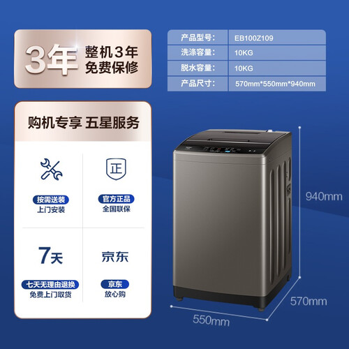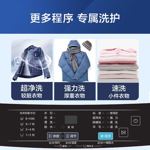 直驱变频电机采用磁力直接驱动,无间接动力损耗,运行更节能省电。9公斤的大容量,满足大件衣物的洗涤需求。