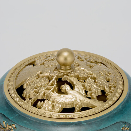 图案喜庆寓意美好,工艺精湛久用不褪色。内敛盘香柔和飘渺,精工细作镂空雕刻,制作用心比例协调,炉壁厚实质感佳。