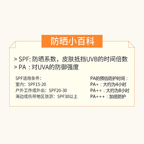长达12.5小时的防晒效果,可以长效抵御UVA/UVB的伤害,有效延缓晒斑的产生。不含有酒精的成分,敏感肌肤也能放心用。