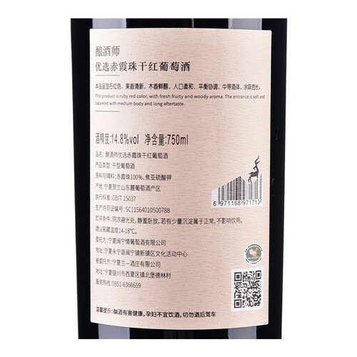 优选赤霞珠葡萄品种为原料,颗粒饱满,专业仓储,恒温恒湿安静避光环境,便酒体更醇香,入口圆润顺滑。