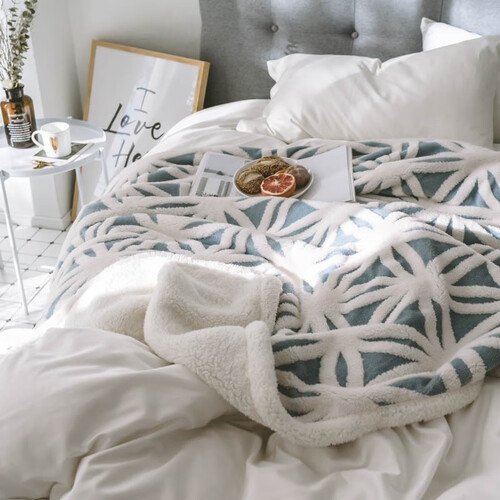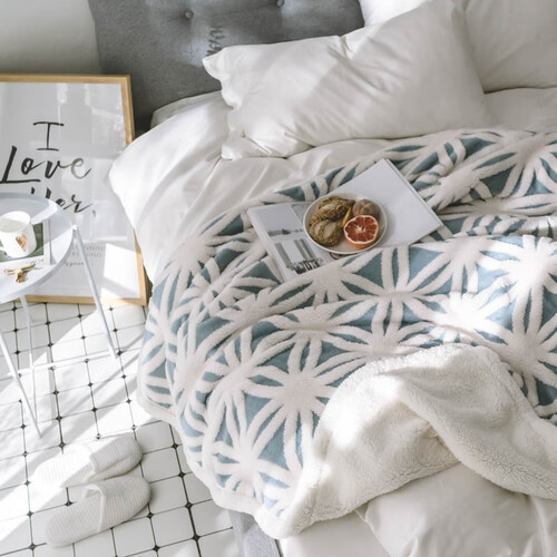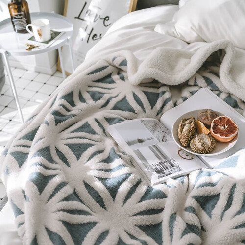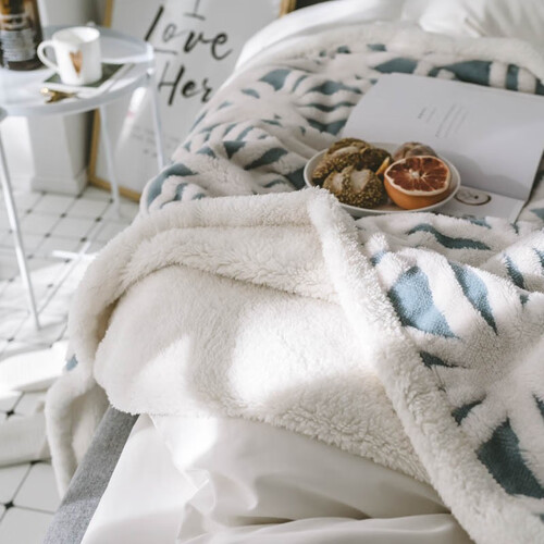 采用提花工艺,印花别致立体,提升整体档次;加厚羊羔毛绒,保暖性好,让午睡更舒服;染色细腻,素雅不张扬,彰显温柔气质。