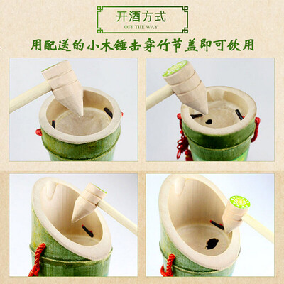 以秘制泡制基酒注入优质成竹竹腔内,以竹养酒,竹酒交融。色泽晶莹剔透,酒液呈金黄碧翠色,入口芳香醇厚,柔和爽口。