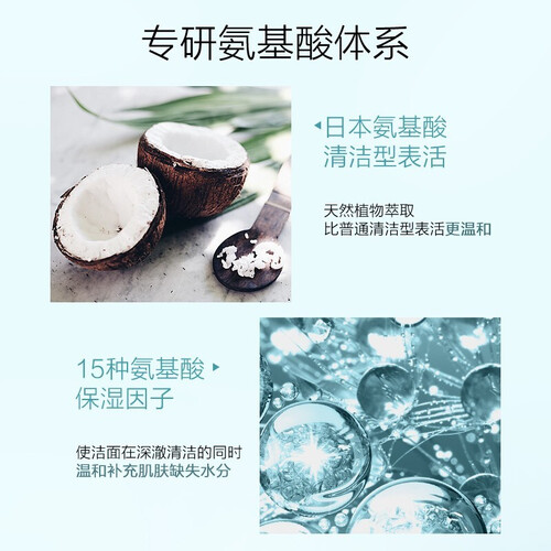 蕴含17种氨基酸成分,配方温和,可以温和清洁肌肤,为你洗去油脂污垢,还能平衡肌肤水油,舒缓敏感不适感,洗后水润不紧绷。