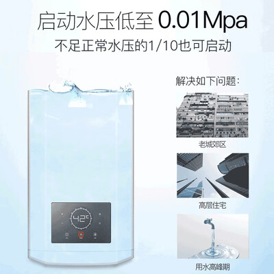 华帝增压回水引擎,龙头一开,热水即来,让你随时都可沐浴。星轨表盘设计,时尚简约,可以更清晰观看温度。