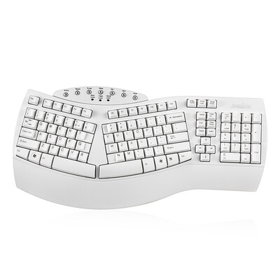 采用分体式设计,提供自然的打字体验,减轻肩膀压力。按键呈曲线排列,可以贴合指腹,不易疲劳。