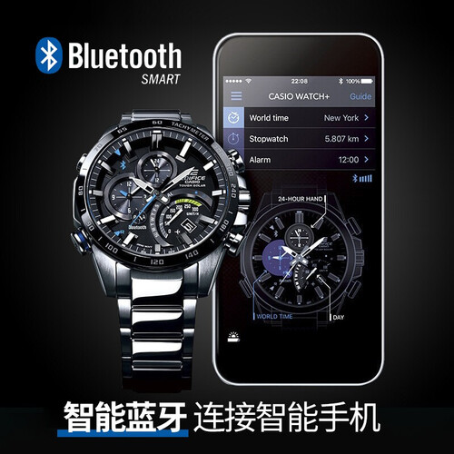 这款搭载太阳能动力的石英手表,环保节能,力求走时准确误差少。可智能蓝牙连接手机,实现手机上调时,畅享满满科技便捷性。