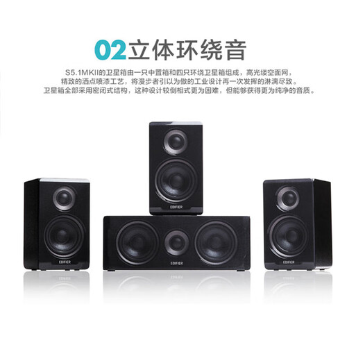 卫星箱采用密闭式结构,能够获得更为纯净的音质。采用双音圈低音扬声器,使低频更加纯净,带来震撼低频体验。