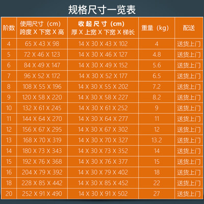 搭载了钢材质的支撑杆,加强梯子结构的稳定性,还有厚实的脚垫,避免磨损地板,梯子整体高度较高,登高方便。