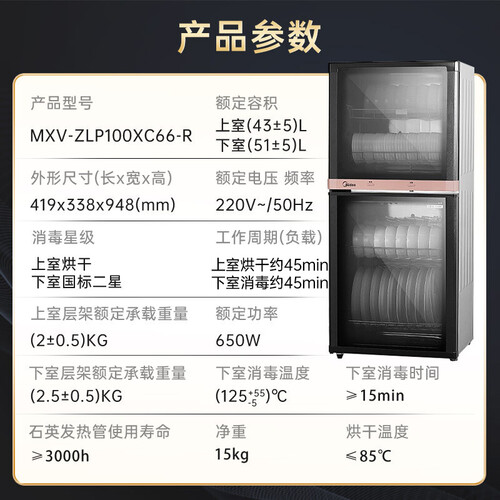 125℃高温红外线消毒,能够更快的蒸发掉腔内水分,避免滋生细菌。一体式发泡技术,有效减少了热量的消失,更加省电。
