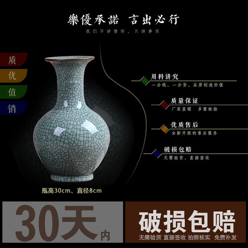 仿古开片青釉花瓶的釉质佳,质地清亮剔透,外观古朴又大方,单独摆放也能很好装点空间,展现主人高文化底蕴。
