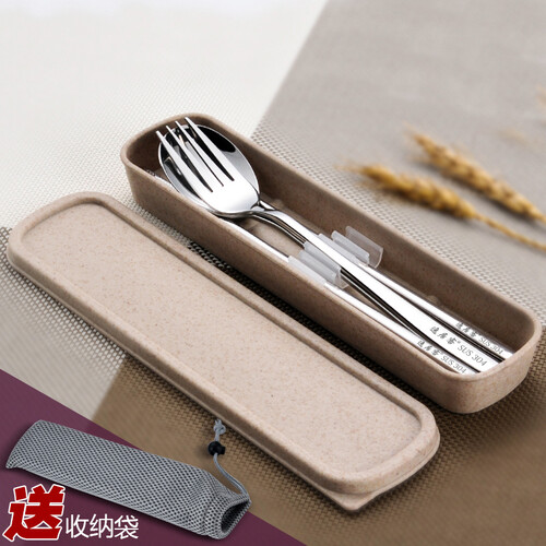 外盒使用麦粒素加淀粉热压成型,可以自然降解,呈现自然颗粒本色;内附有硅胶紧固栓,柔韧地将餐具固定,不会相互碰撞发出噪音。