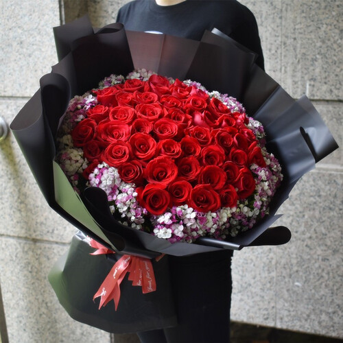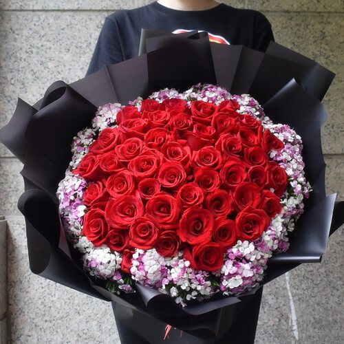 相思梅搭配红玫瑰的设计,寓意着爱情从天光乍破到暮雪白头。经典黑色牛皮纸包装,适用多年龄段,凸显您的艺术品味。