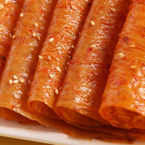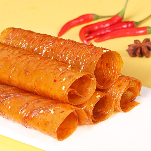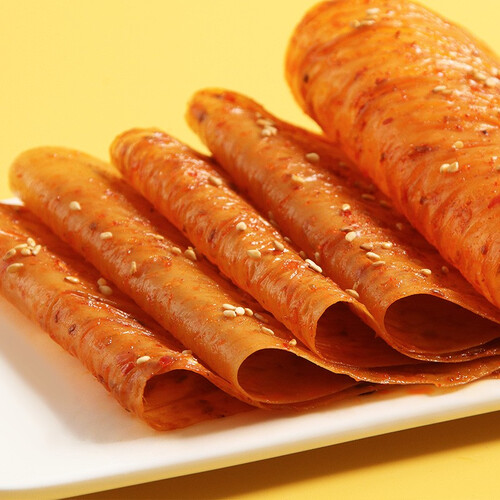 辣片纤薄微透,散发浓郁豆香,入口麻辣鲜香,富有嚼劲,唤醒你的味蕾。色泽金黄诱人,泛着油光,一口一口停不下来。
