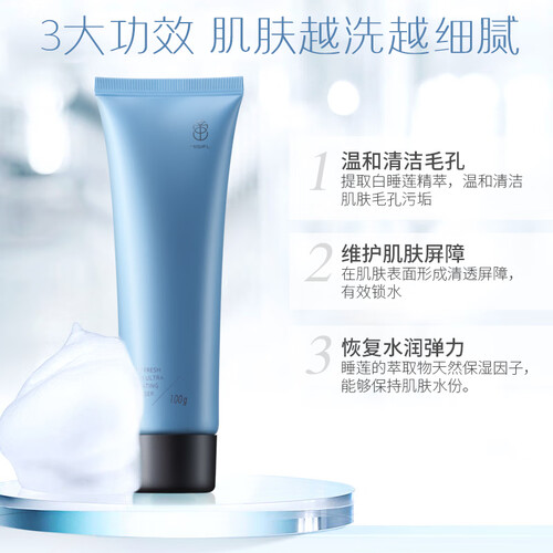 清洁能力强,在洗完脸之后并不会感觉到紧绷,更舒适。使用了睡莲的萃取物,具有天然保湿因子,可以让肌肤持久水润。