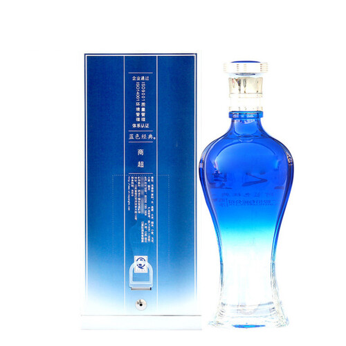 精选多种天然优质谷物,传统的酿造工艺,清澈透亮的酒液滴滴醇香,口感绵柔细腻,回味清爽甘甜,海蓝色透明瓶身,高档大气。