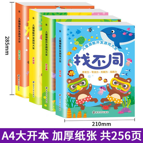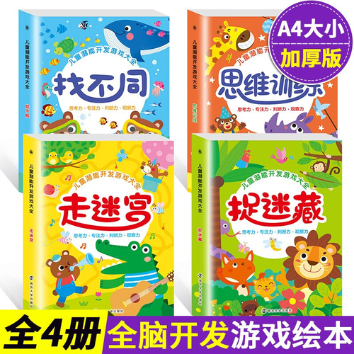 包含找不同、思维训练、走迷宫、捉迷藏4册,以游戏的形式启发孩子的智能。游戏设置由易到难,符合孩子的认知需求。
