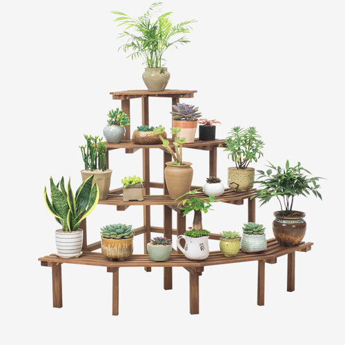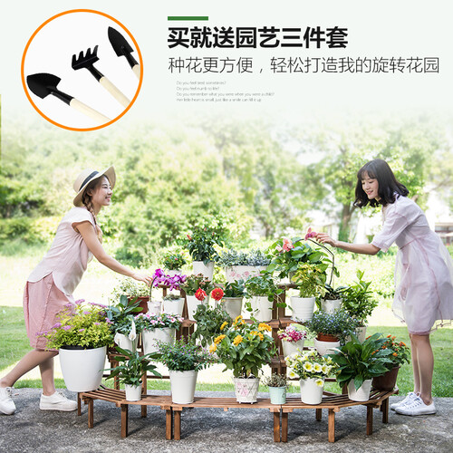 木马人 组合扇形实木多层花架