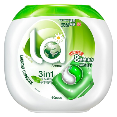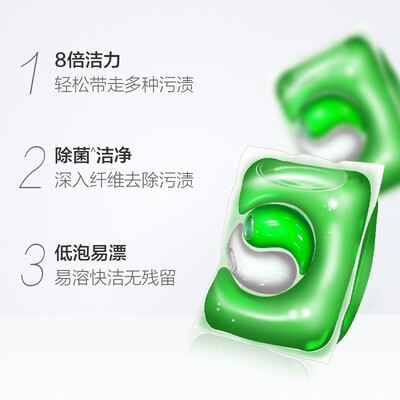 精选天然植皂,深层瓦解细菌污渍,呵护家人的娇嫩肌肤;凝珠设计,一粒就能带来多种清洁效果,无需再为洗衣液倒多少而忧心。