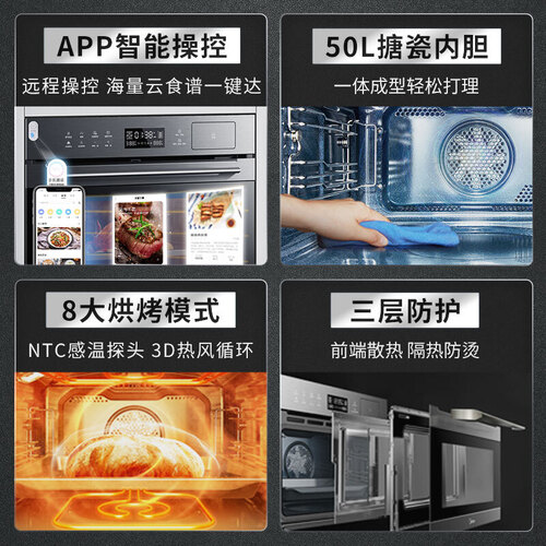 美的 双腔珐琅搪瓷内胆蒸烤箱