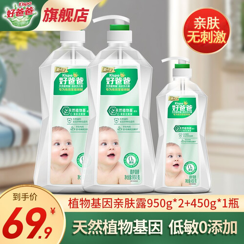 这款好爸爸天然亲肤洗衣液中含有多重去污因子,天然呵护,有效去除顽渍,无化学残留,让你使用起来更放心。