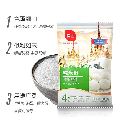 粉质细腻,闻起来具有清香的气息,白皙的色泽,软韧可口。可以轻松制作多种美味,月饼、汤圆都能轻松驾驭。