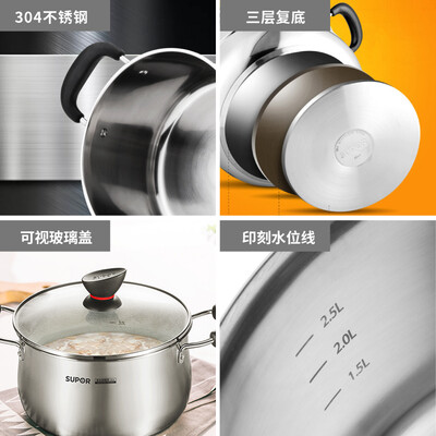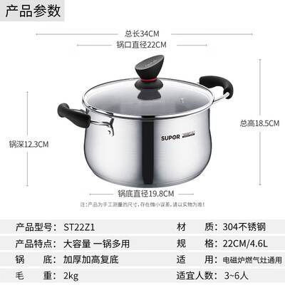 磁力聚能环锅底,加热均匀,导热速度快。甄选食品级304不锈钢材质制成,可直接接触食物,安全无异味,使用更安心。