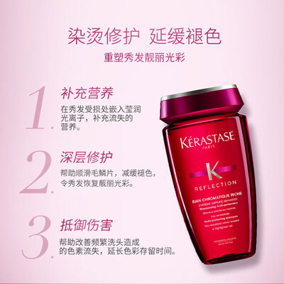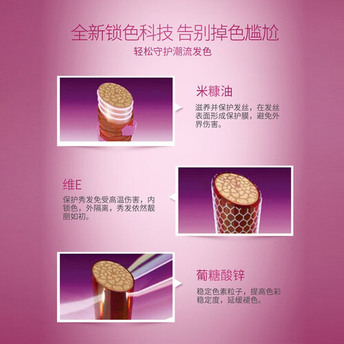拥有锁色护色精华,染后的秀发色泽鲜艳,丝丝分明,无硅油的配方,改善受损秀发的毛躁,缺乏光泽现象,令秀发健康柔顺。