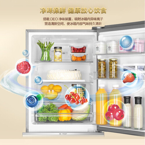 风冷无霜技术的巧妙采用,不需要除霜,为你省去了不少使用麻烦。配备DEO净味装置,能够让内部气味持久保持清新。