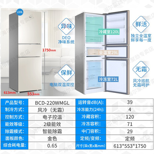 海尔 风冷无霜变频三门冰箱
