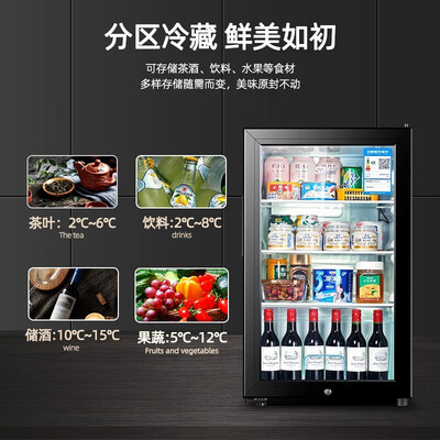 时尚的黑色机身,搭配透明玻璃面板,适用于饮料冷藏存储。5分钟速冷,保持食材快速锁鲜。采用锁水保鲜技术,充分保护食物水分。