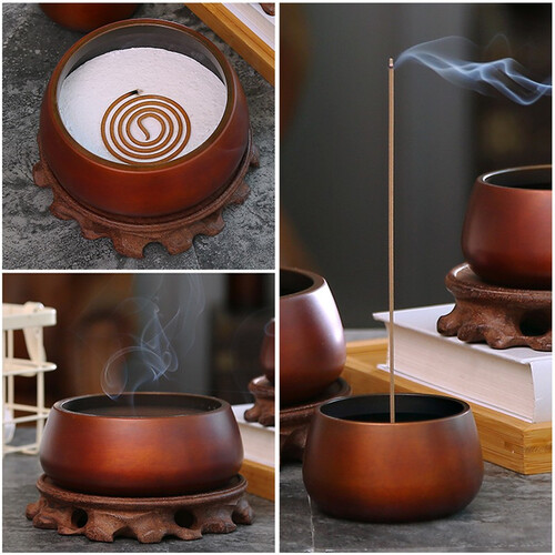 无盖式设计,盘香和线香均可放置在里面,使用灵活不受限制。胚体呈黄铜材质,沉稳大气有质感,小细节彰显品质。