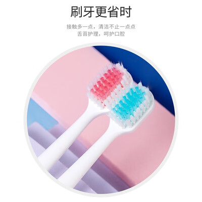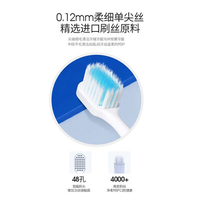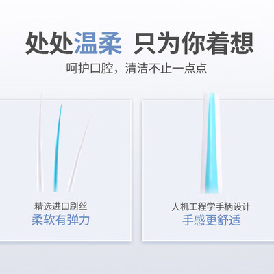 刷毛柔软舒适,减少刷牙时对牙龈的伤害,细密的刷毛能深入牙齿消息缝隙,全面清洁牙齿污垢,保持口腔持久清新。