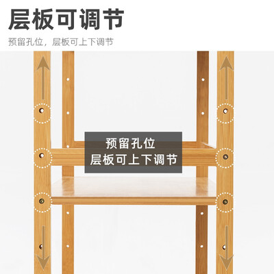 采用楠竹材质制造,预留孔位,层高可以调节,使用简单方便。采用加深宽度设计,多物品都可以随心地摆放。