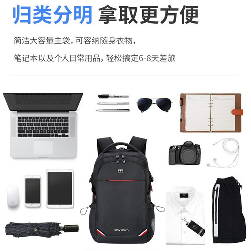 拥有背部防盗袋,可放置手机等贵重物品,安全防盗。搭配独立电脑仓,加厚加大,给你的电脑周全保护。
