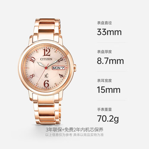 采用人工合成的蓝宝石玻璃形成的表镜,兼顾良好的光透性和耐磨性,持久光亮。玫瑰金色的外观,适合优雅精致的女生佩戴。