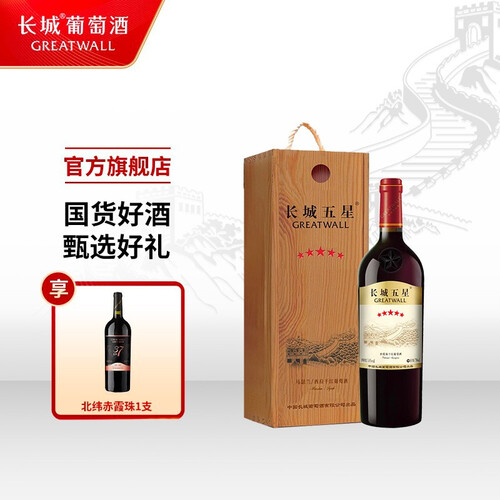 经典长城五星标志,瓶身两侧采用流线型设计,轻触温润如玉,外观简约大方,红酒顺滑,入口果味浓郁,是宴请客人的不错选择。