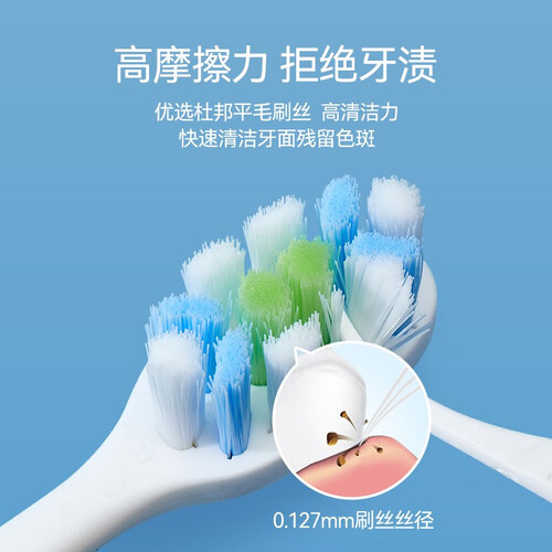 科技感刷柄设计,自然弧度的人机设计,色彩透明,美感十足。进口软毛刷料,细密柔软贴合牙齿,温柔呵护牙龈。