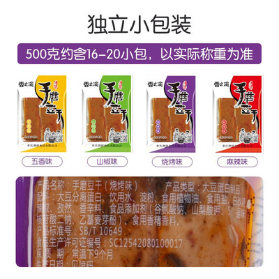 拥有独立小袋包装,携带省地,满足多种场合品尝的需求。豆干经过手工研磨而成,具有鲜嫩滑弹口感,咀嚼难忘。