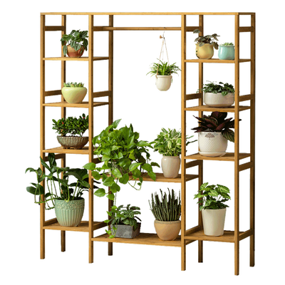 高山楠竹材质,经过打磨加厚的层板和支脚,稳稳承重不摇晃;空中花园挂杆设计,可悬挂多肉和吊篮等植物,让家充满绿色生机。