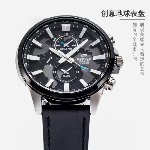 地球盘面设计,搭配纯黑色演绎,呈现酷炫个性的腕上风格。蓝宝石玻璃镜面,硬度高,不易破裂和刮花,清晰透光,历久弥新。