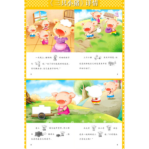 蕴含10个睡前故事,包括小红帽和三只小猪多种童话故事。不同卡通类贴纸,提高孩子眼手协调性,培养逻辑思维力。