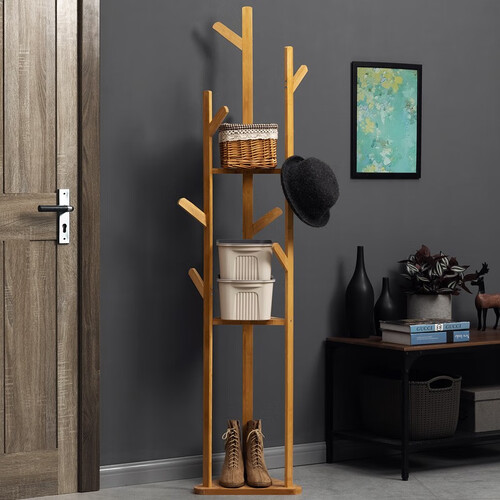 衣架采用多层树架造型,不仅可以悬挂衣物,还可以摆放物品,容纳空间大。小体积,让衣帽架占地小,节省室内空间。
