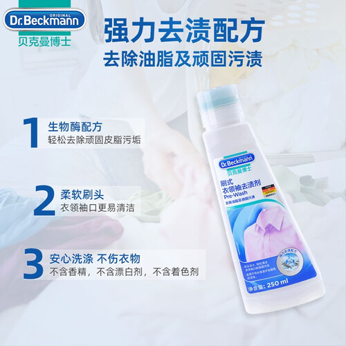 配有柔软的刷头,能够轻松去除顽固和陈旧干涸的污渍;采用牛胆皂及生化酶的组合,不含香精,不会散发刺鼻的气味。