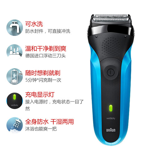 拥有全身防水功能,洗澡时也可以剃须,干湿两用更方便。具备闪充功能,忘记充电也不怕,静待几分钟便可获得一次剃须的电量。