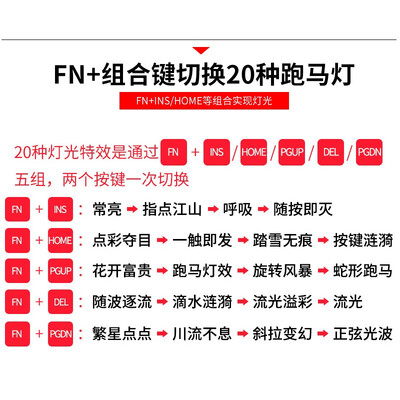 拥有20种炫酷灯效,缤纷耀眼生动绚丽,凸显科技感。采用金属面板设计,质感强劲结构稳固,耐用力更持久。
