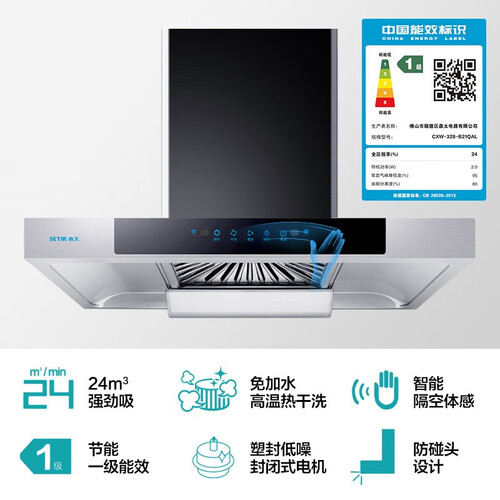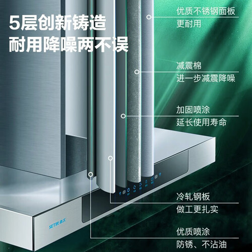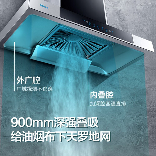 采用900mm的加深吸烟腔,进一步增负压。针对公众烟道,30S增压爆吸,冲破排烟障碍,强力排出油烟。